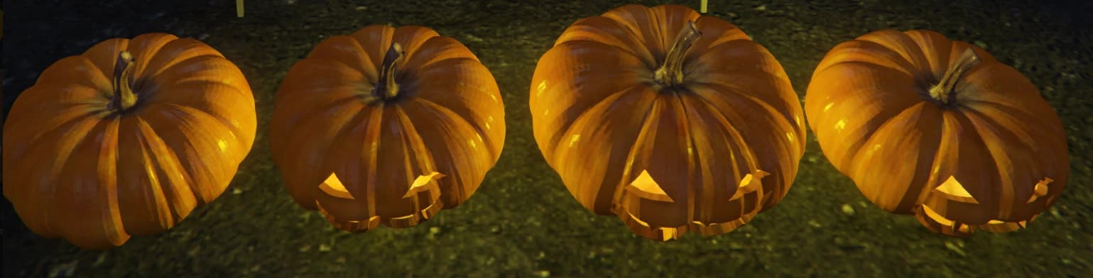 - Multiple pumpkins placed around the map. Script is configurable to allow each player to pick them up once a day OR only one single player to pick them up once a day - Making it more of a competition instead of a group activity.