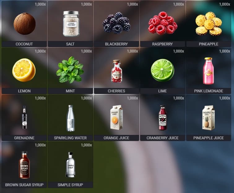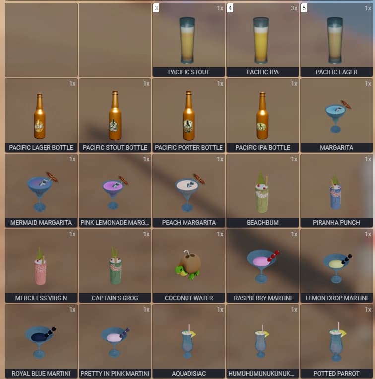 - In-game drink menu UI