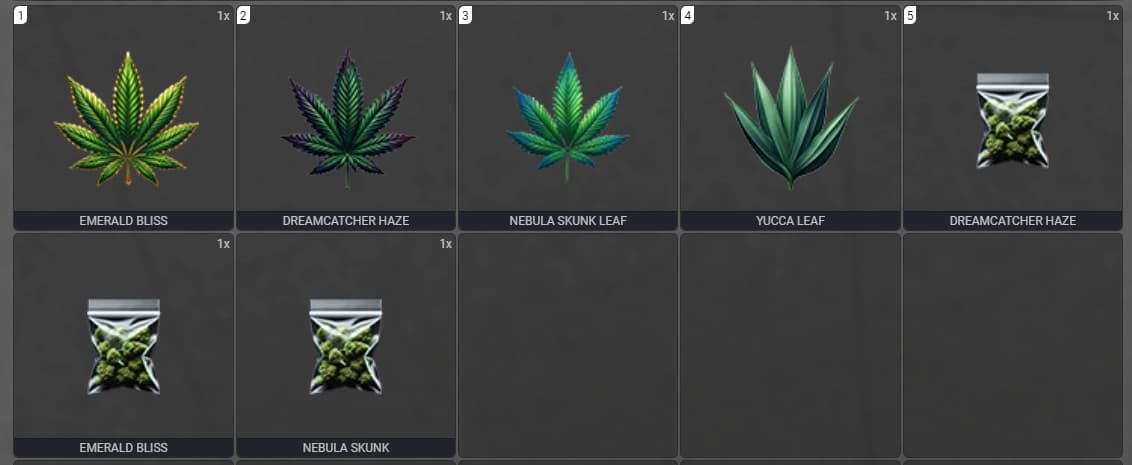 - Three different pre-configured weed strains.